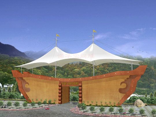 膜結構棚更大跨度的建筑空間:由于膜材料具有非常輕的自重(約1000g/m2),因此膜結構克服傳統結構在大跨度(無支撐)建筑上所遇到的困難,可創造無遮擋可視空間。